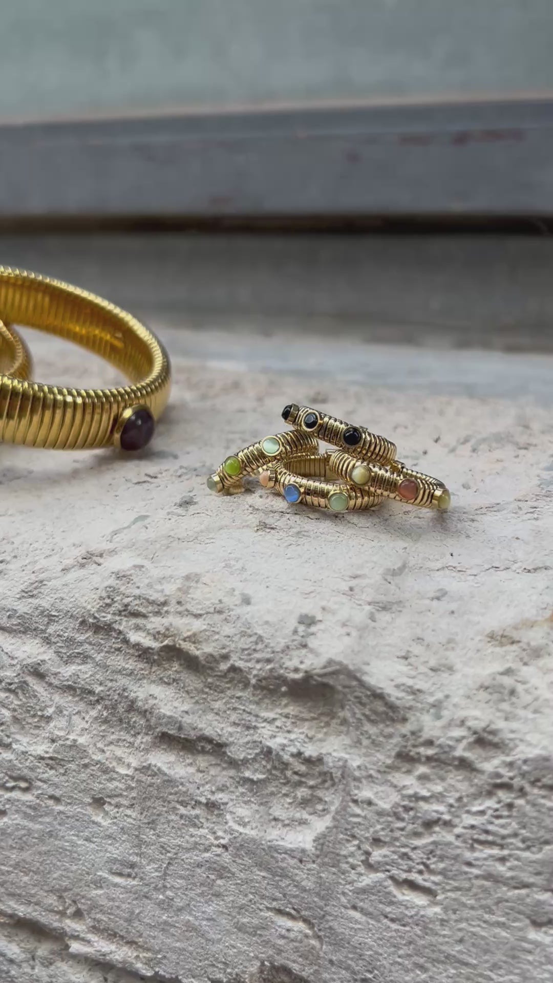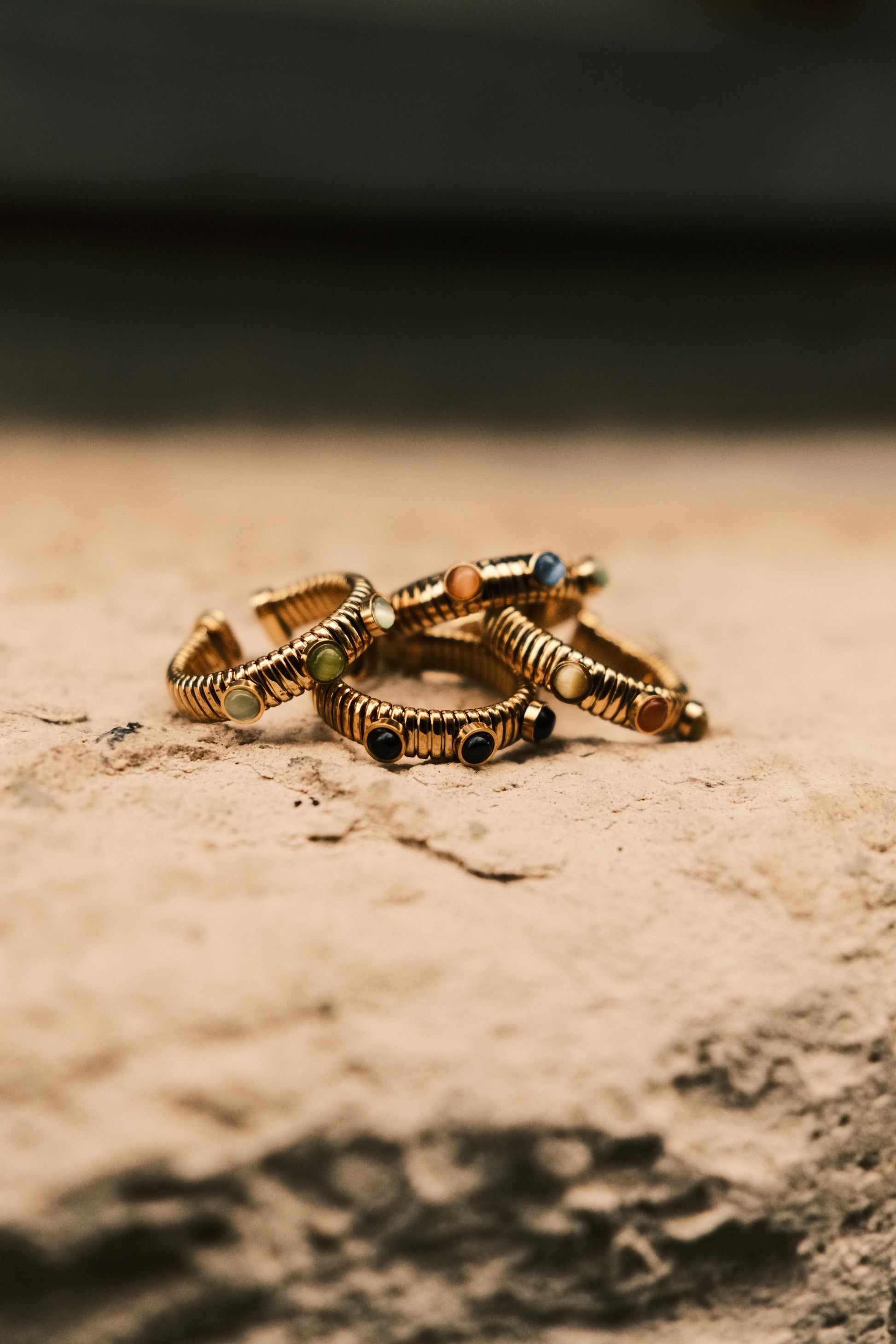 La bague Solea habille la main avec style et délicatesse. Son anneau doré texturé est rehaussé d’une pierre colorée au caractère affirmé. Déclinée en vert, noir, bleu et corail, elle se porte seule comme pièce forte ou en accumulation pour un look tendance.
