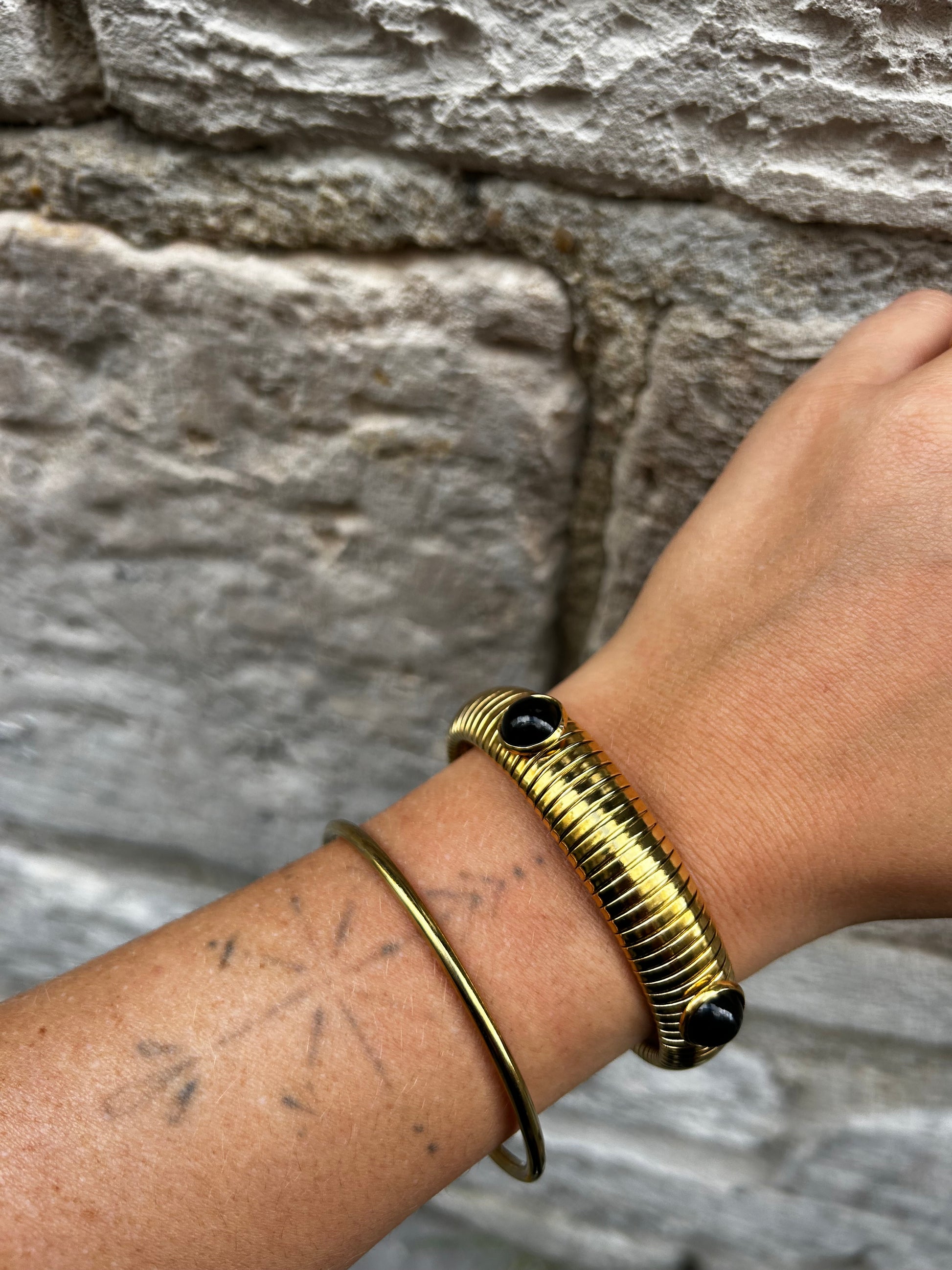 Souple et confortable, il s’adapte parfaitement au poignet tout en apportant une touche chic et tendance. Idéal pour être porté seul en pièce statement ou associé à d’autres bracelets pour un effet stacking, il deviendra vite votre allié mode au quotidien.