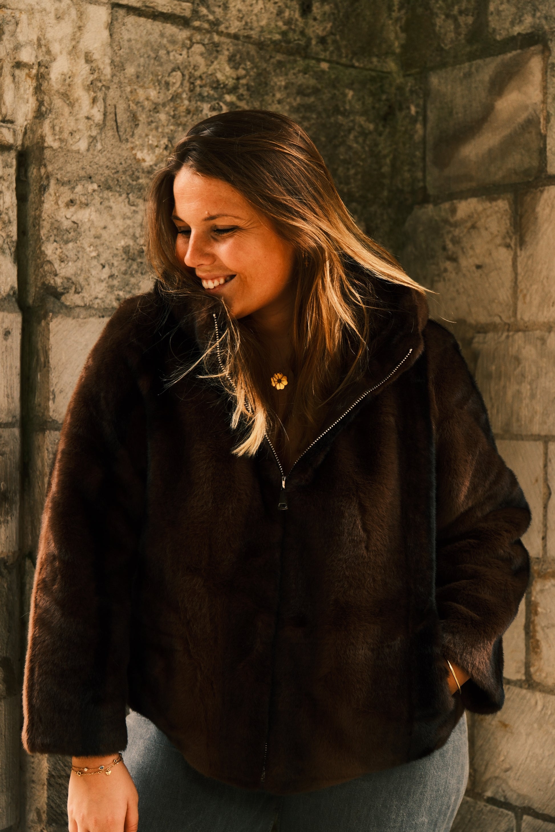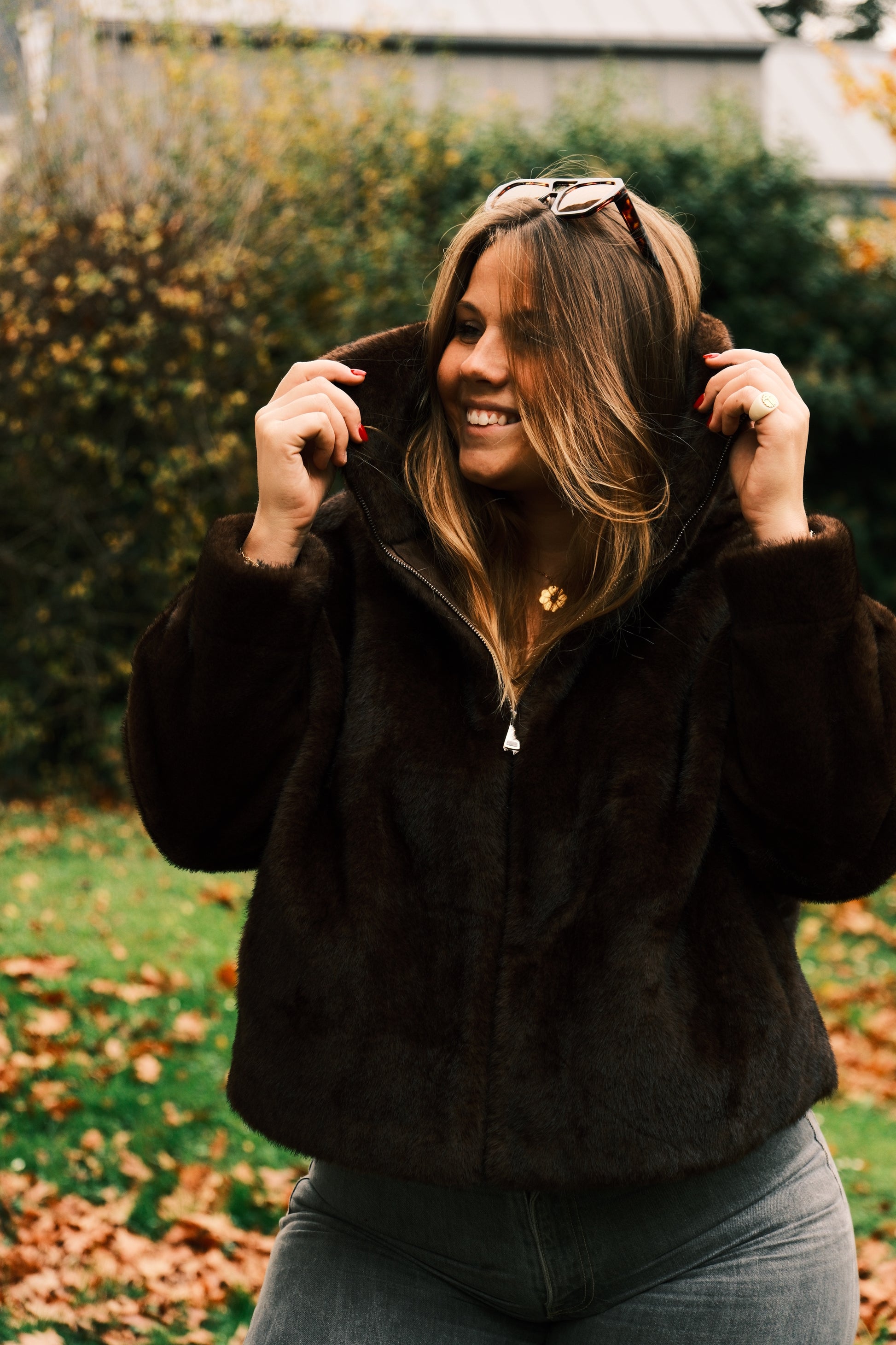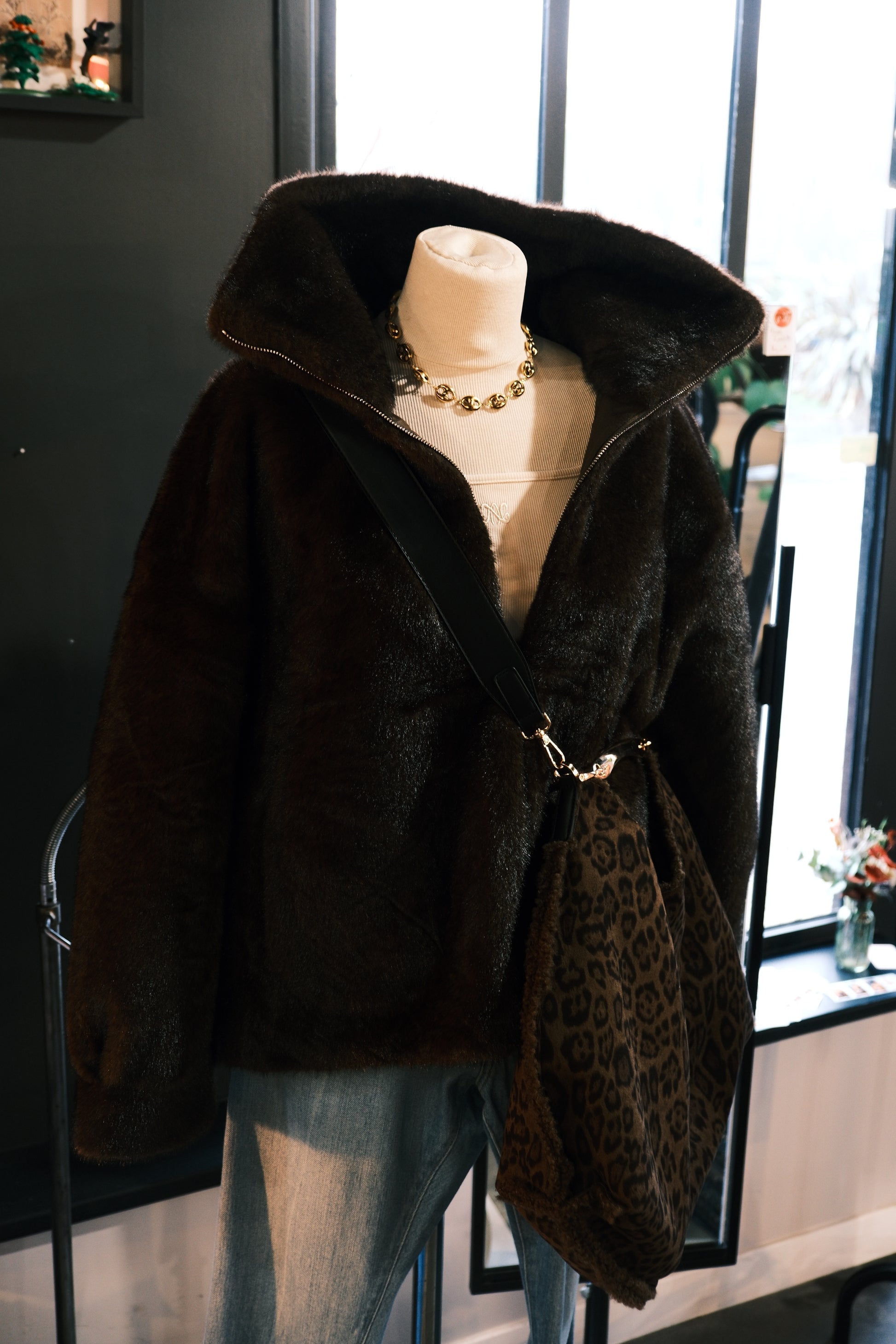 Sa matière effet fourrure vegan ultra douce et son gros col / capuche enveloppante offrent une allure chic tout en restant décontractée. Idéale pour affronter les journées froides avec élégance, elle se porte aussi bien sur un jean que sur une robe pour un look moderne et raffiné.