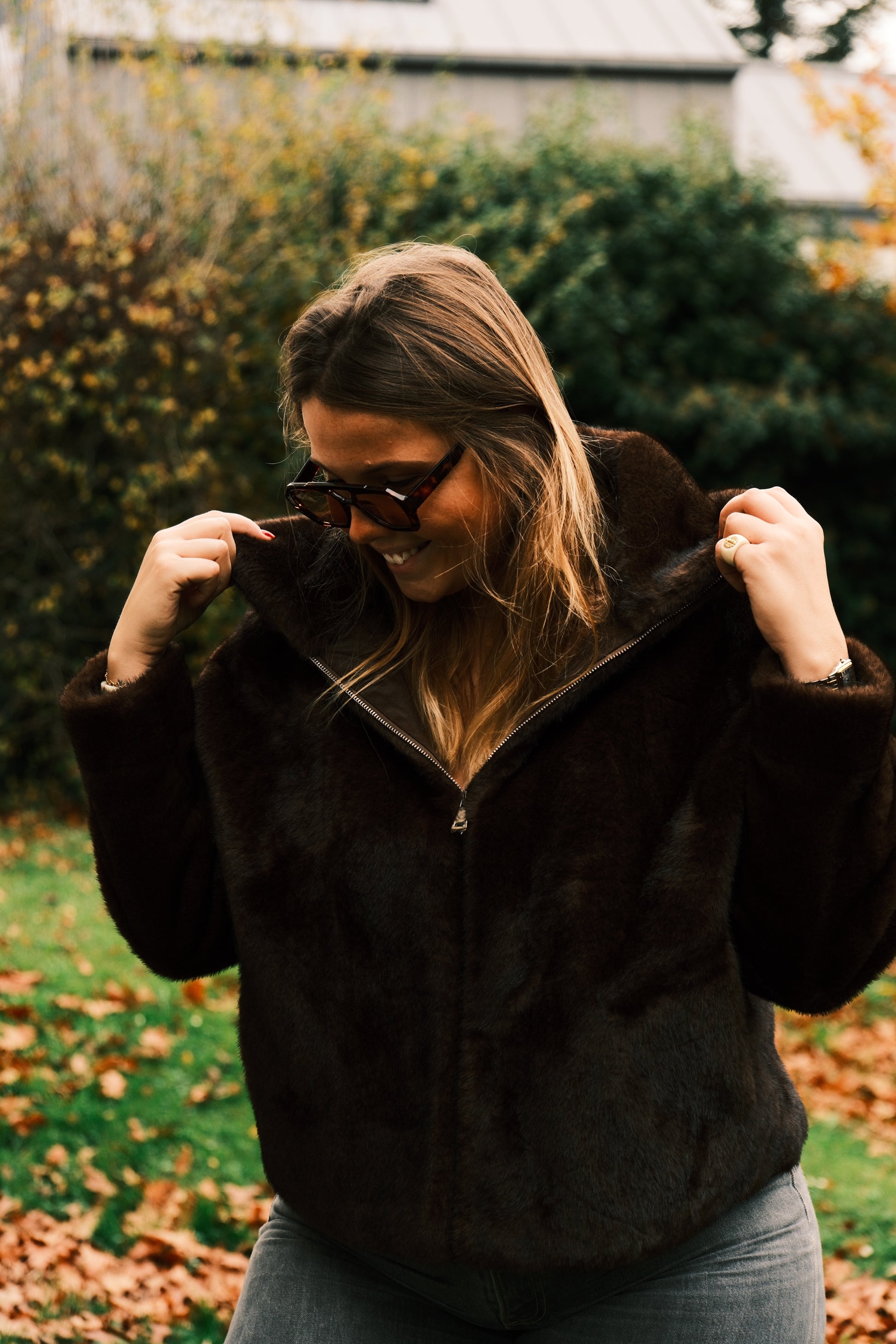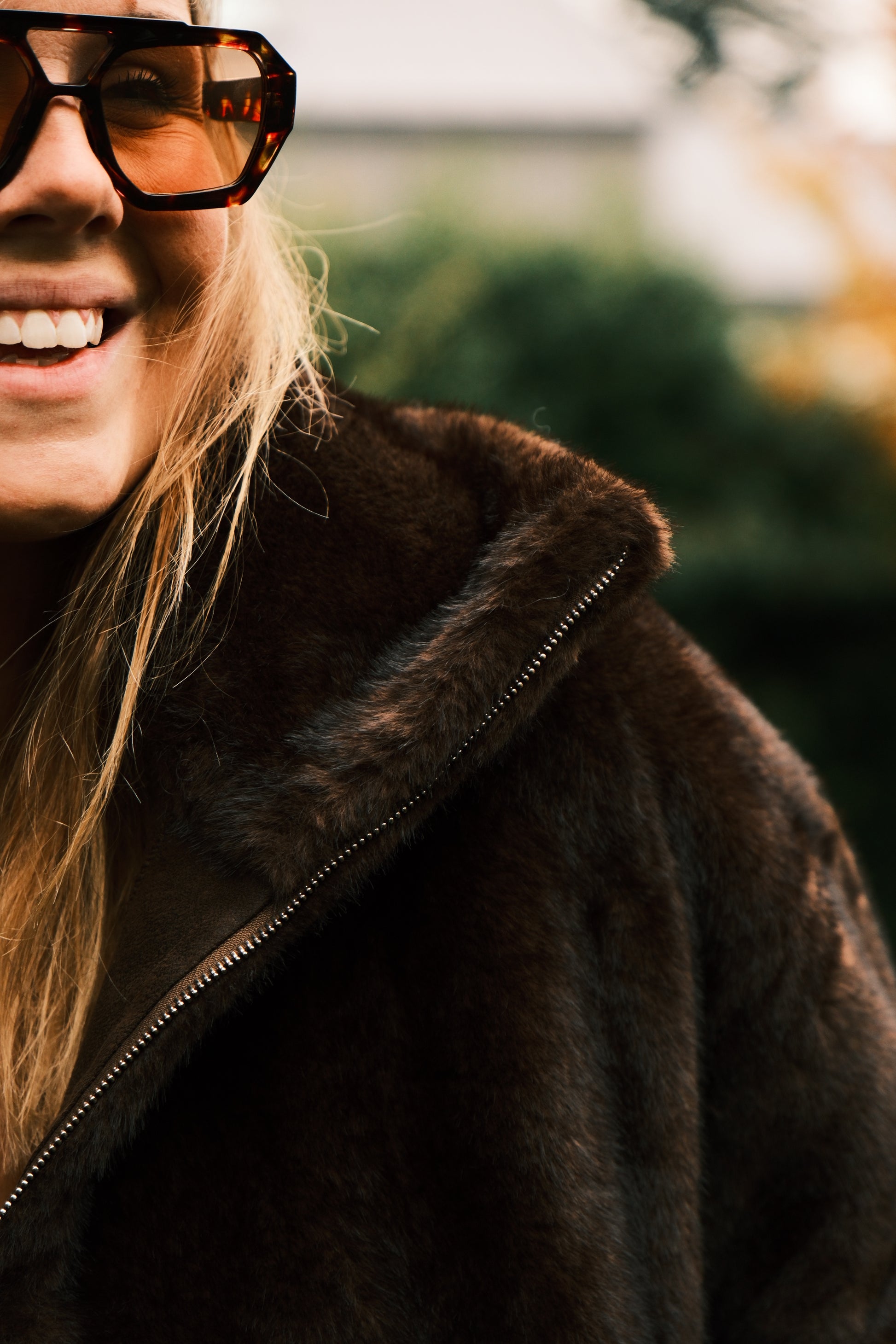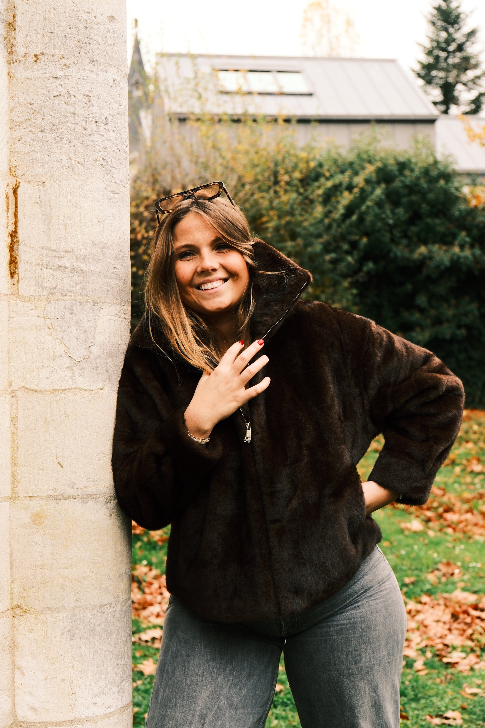 Sa matière effet fourrure vegan ultra douce et son gros col / capuche enveloppante offrent une allure chic tout en restant décontractée. Idéale pour affronter les journées froides avec élégance, elle se porte aussi bien sur un jean que sur une robe pour un look moderne et raffiné.