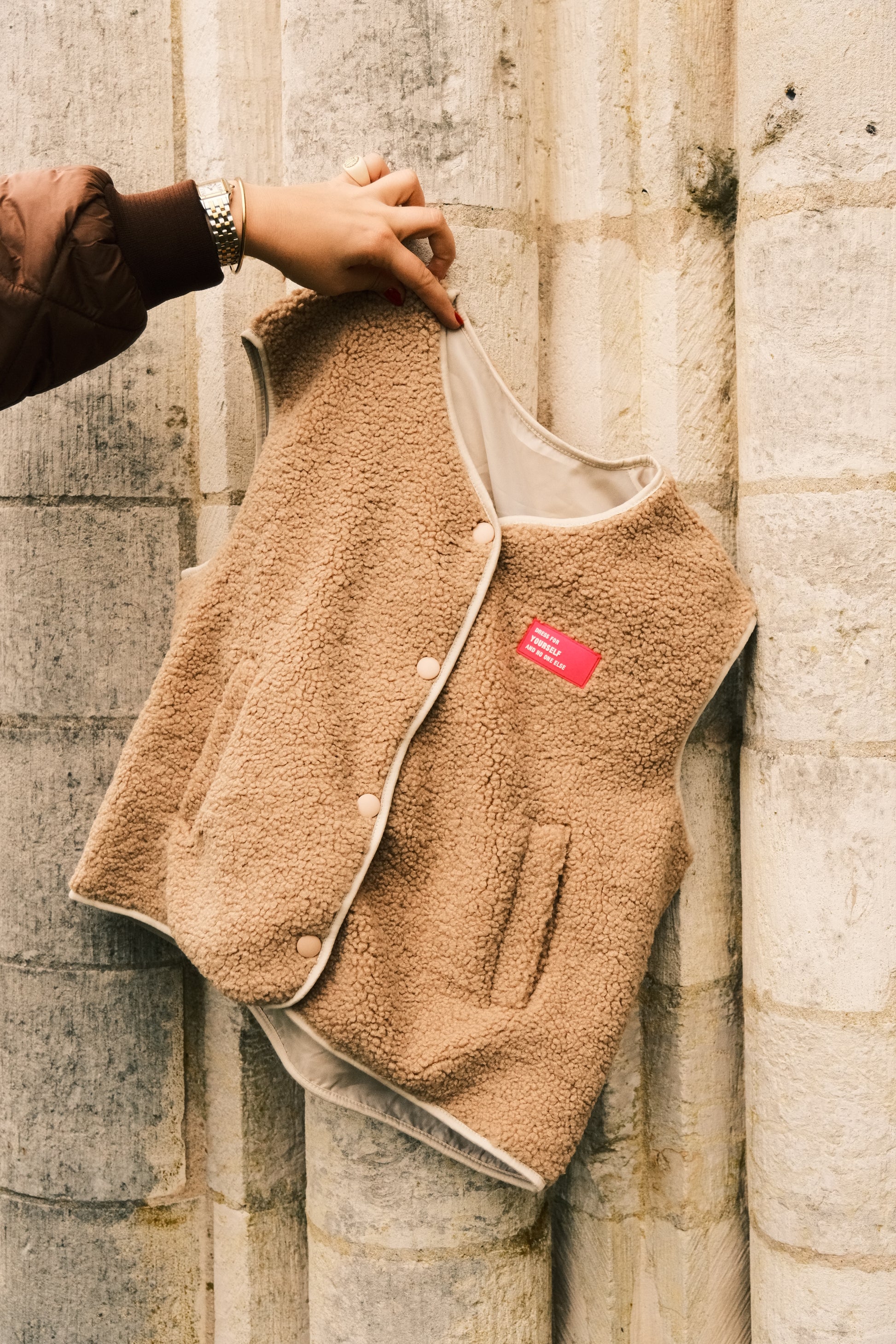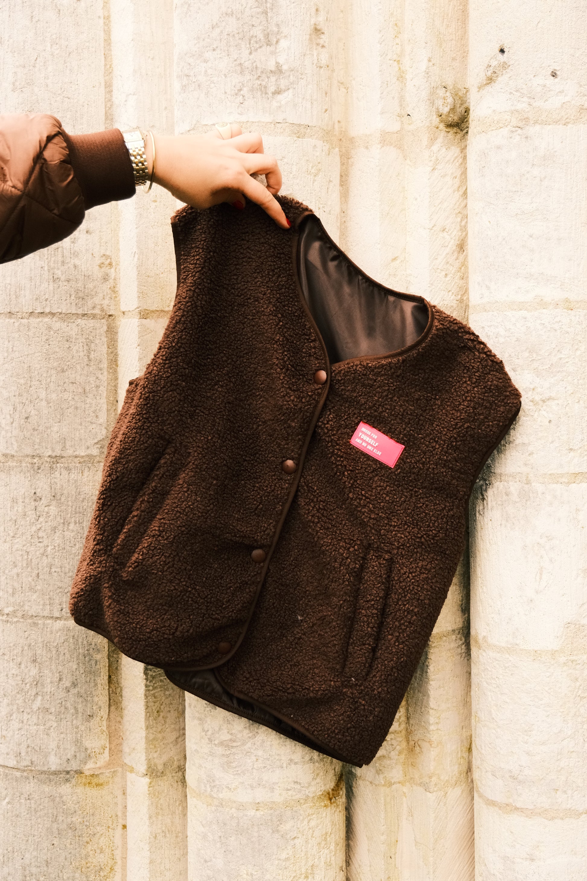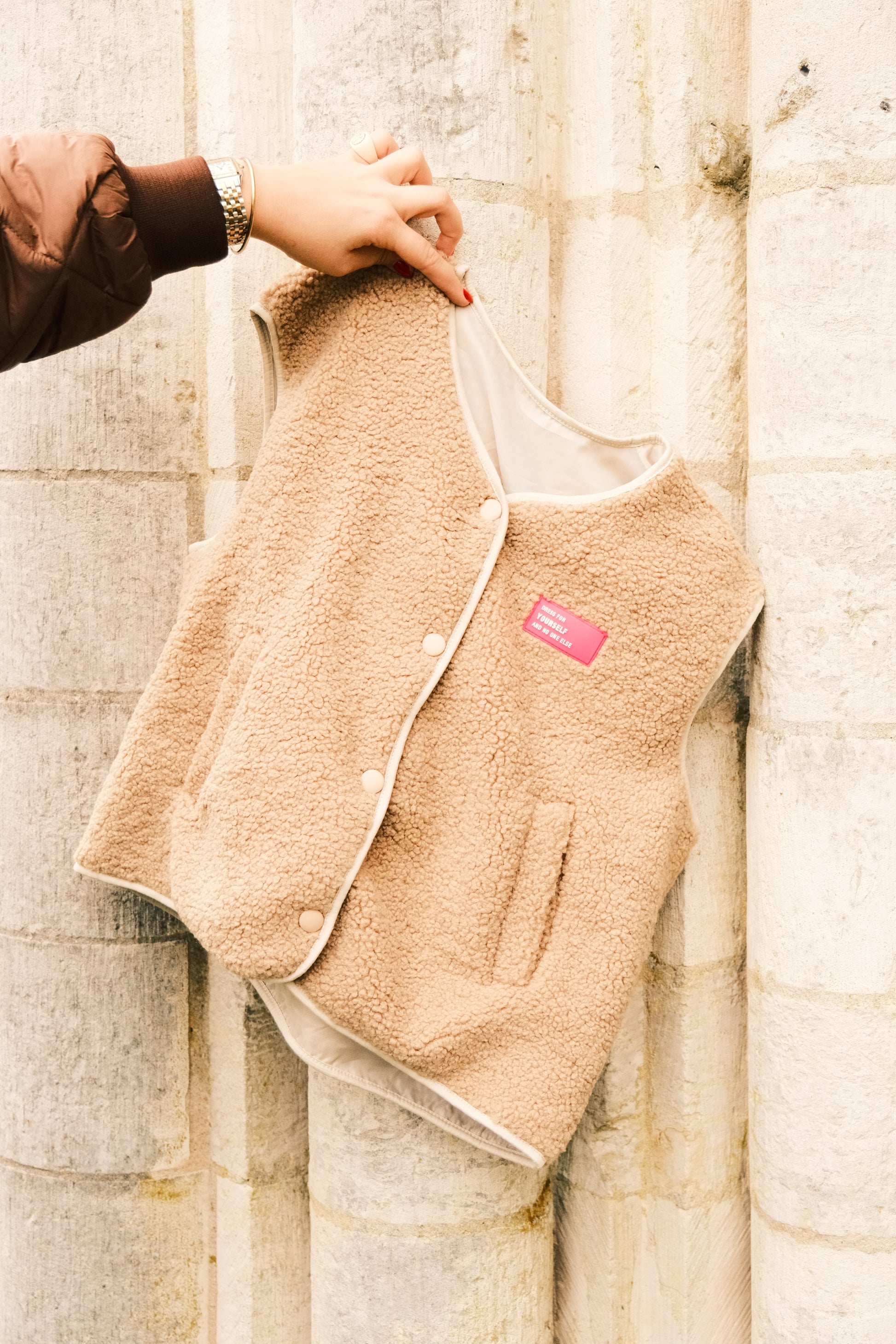 Pièce iconique du vestiaire Mamoune, la veste sans manches Johanne charme par sa texture douce effet shearling et son allure à la fois chaleureuse et contemporaine. Parfaite pour affronter les journées fraîches, elle allie confort, style et praticité. Déclinée dans plusieurs coloris, elle se porte facilement sur un ensemble décontracté ou une robe fluide pour un look enveloppant et moderne.