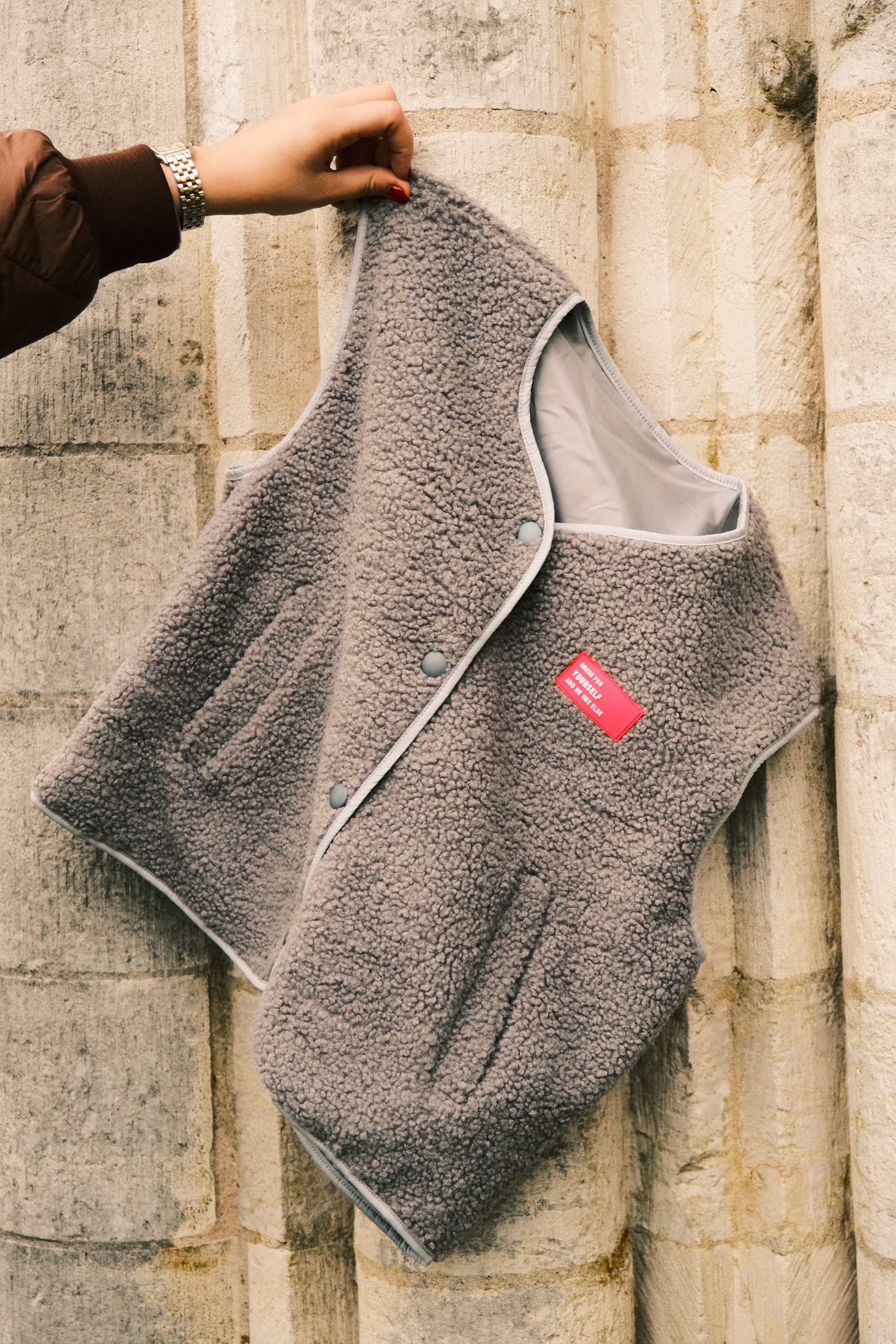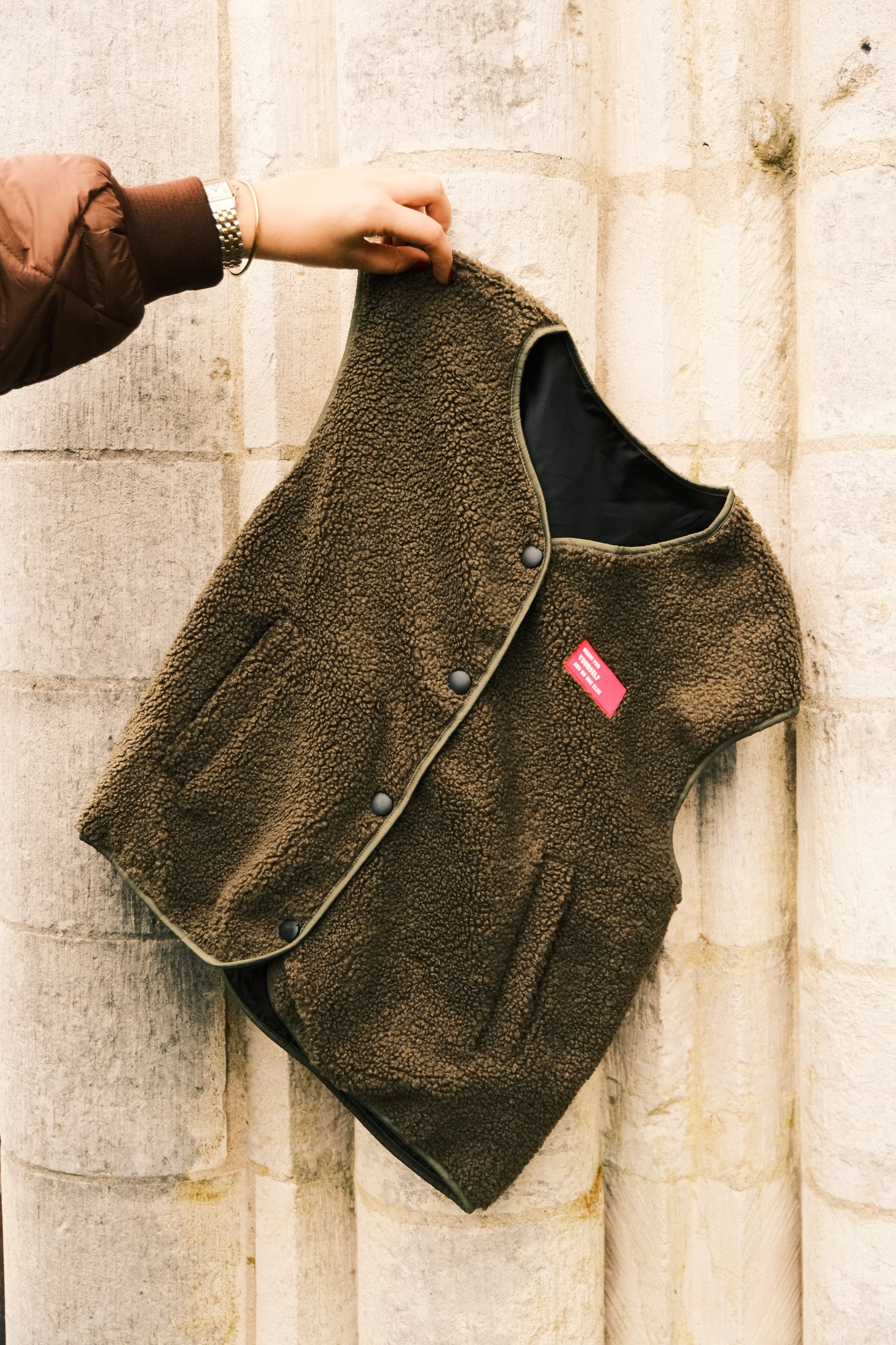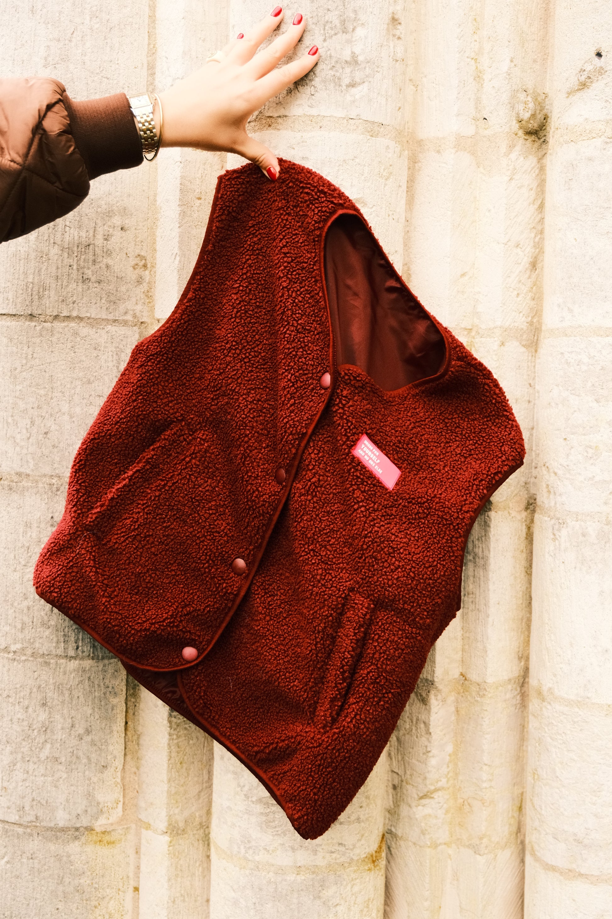Pièce iconique du vestiaire Mamoune, la veste sans manches Johanne charme par sa texture douce effet shearling et son allure à la fois chaleureuse et contemporaine. Parfaite pour affronter les journées fraîches, elle allie confort, style et praticité. Déclinée dans plusieurs coloris, elle se porte facilement sur un ensemble décontracté ou une robe fluide pour un look enveloppant et moderne.