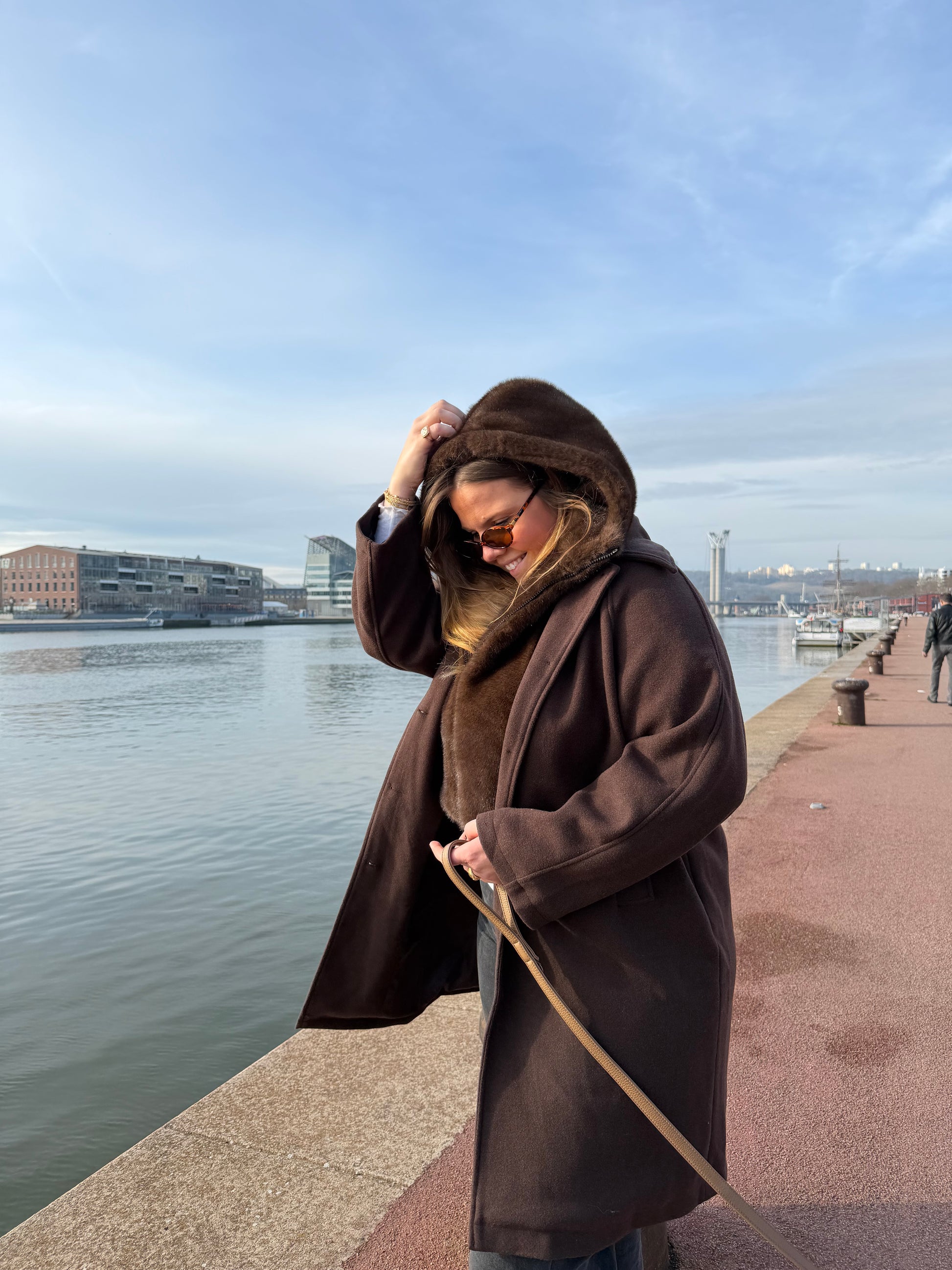 Ce manteau en laine avec col en fourrure est une pièce forte de la collection Mamoune, pensée pour celles qui recherchent un manteau d’hiver chic, pratique et intemporel.