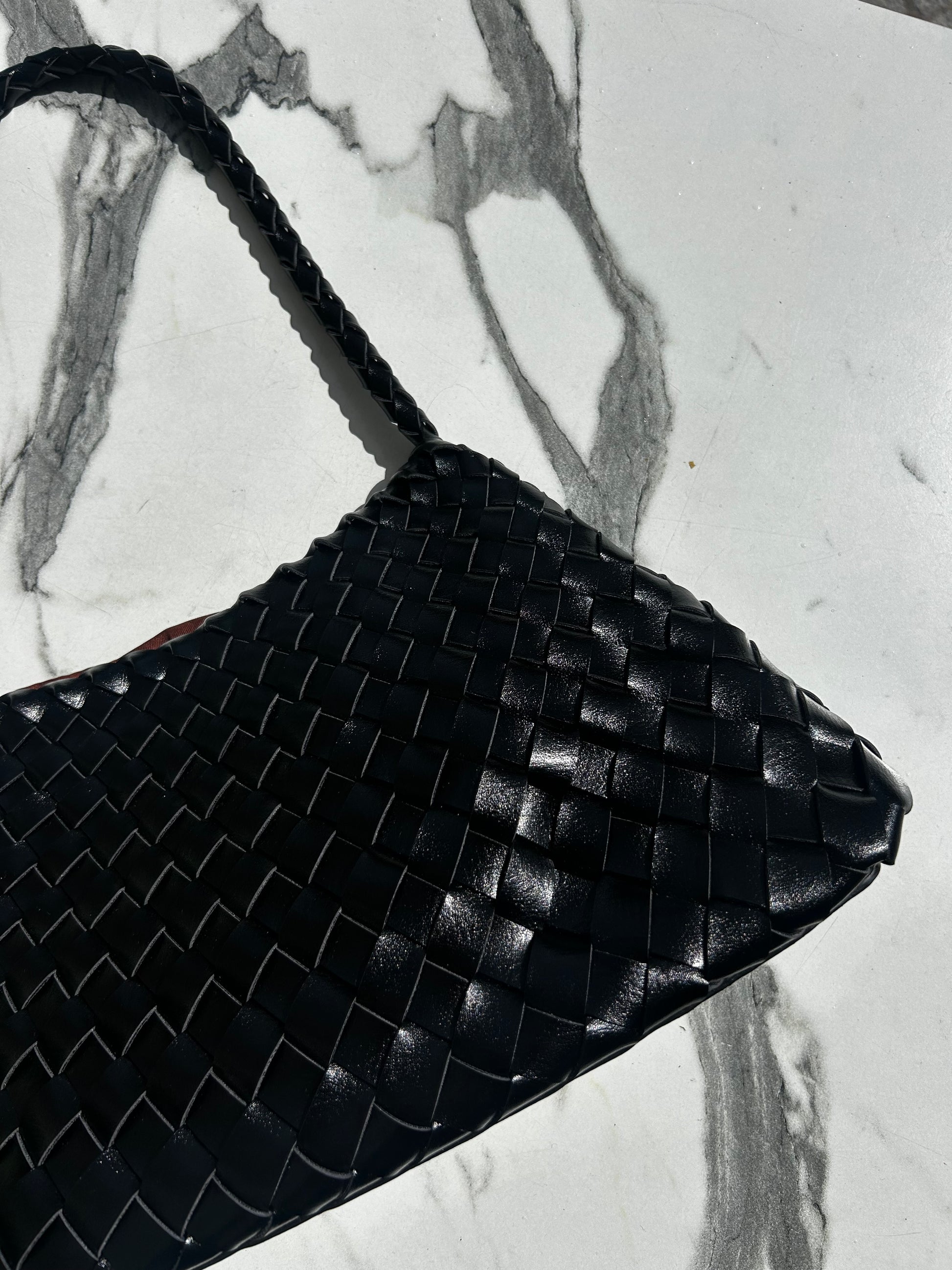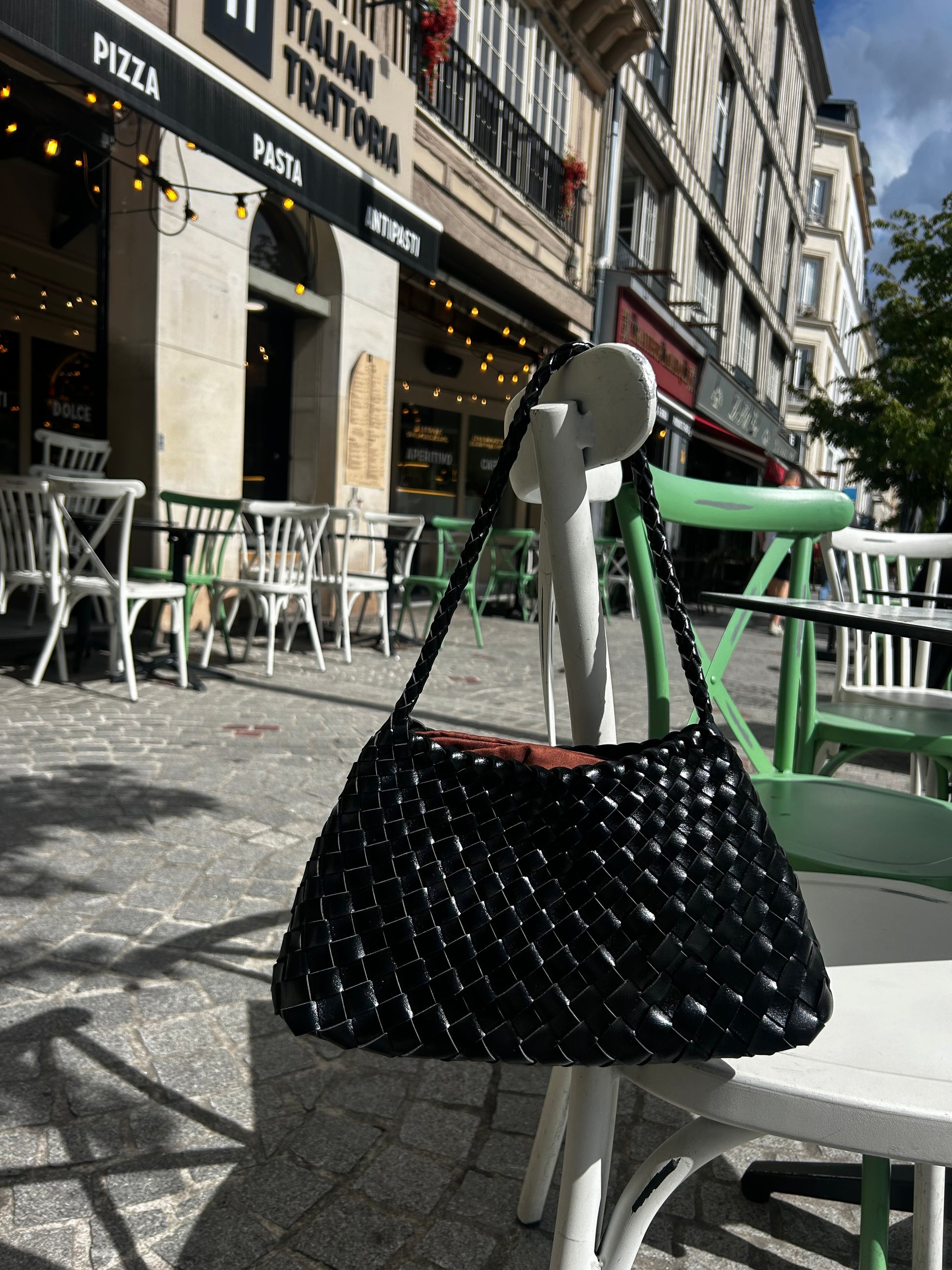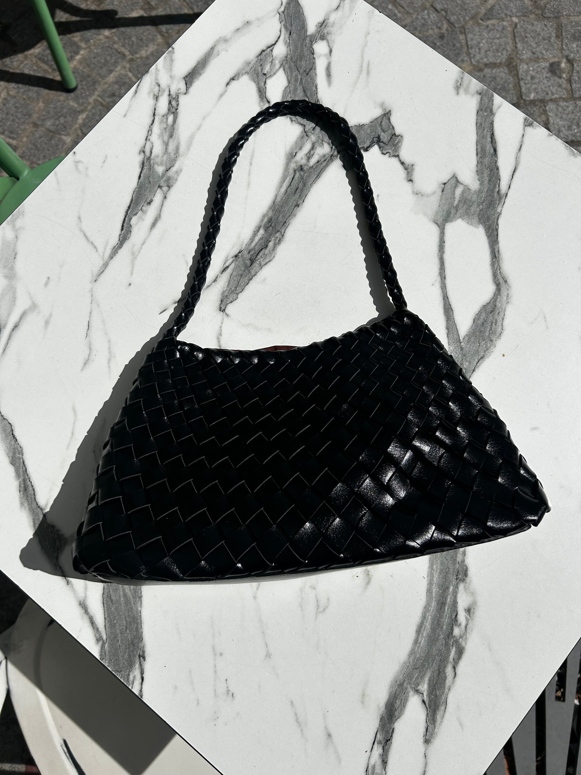 Petit sac tressé en cuir noir – fabrication artisanale italienne