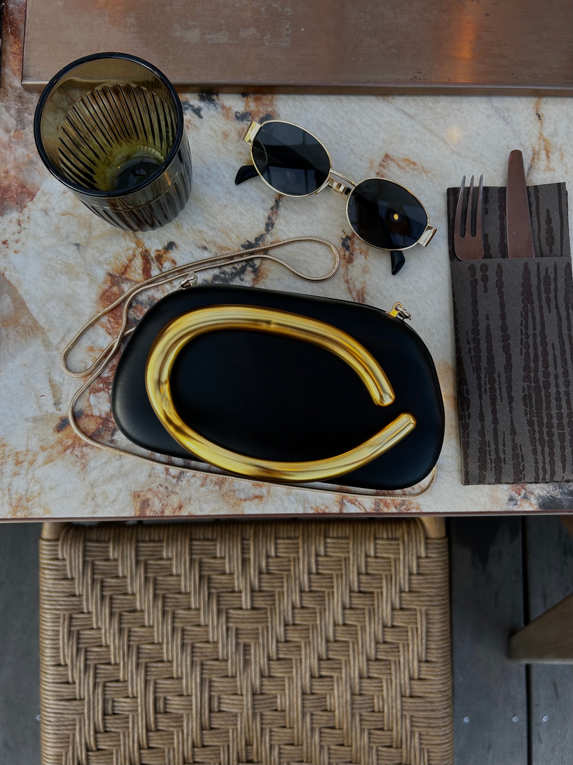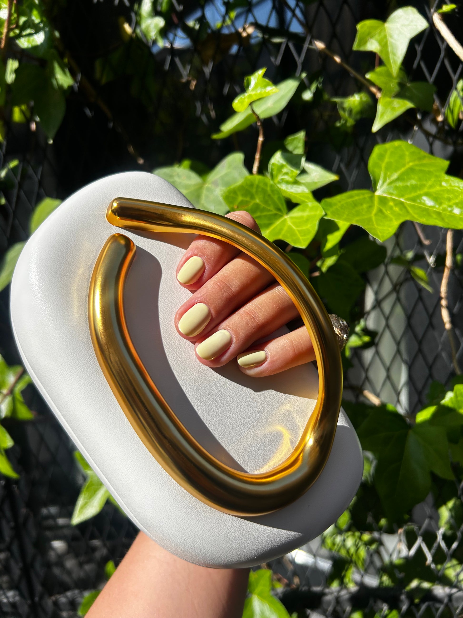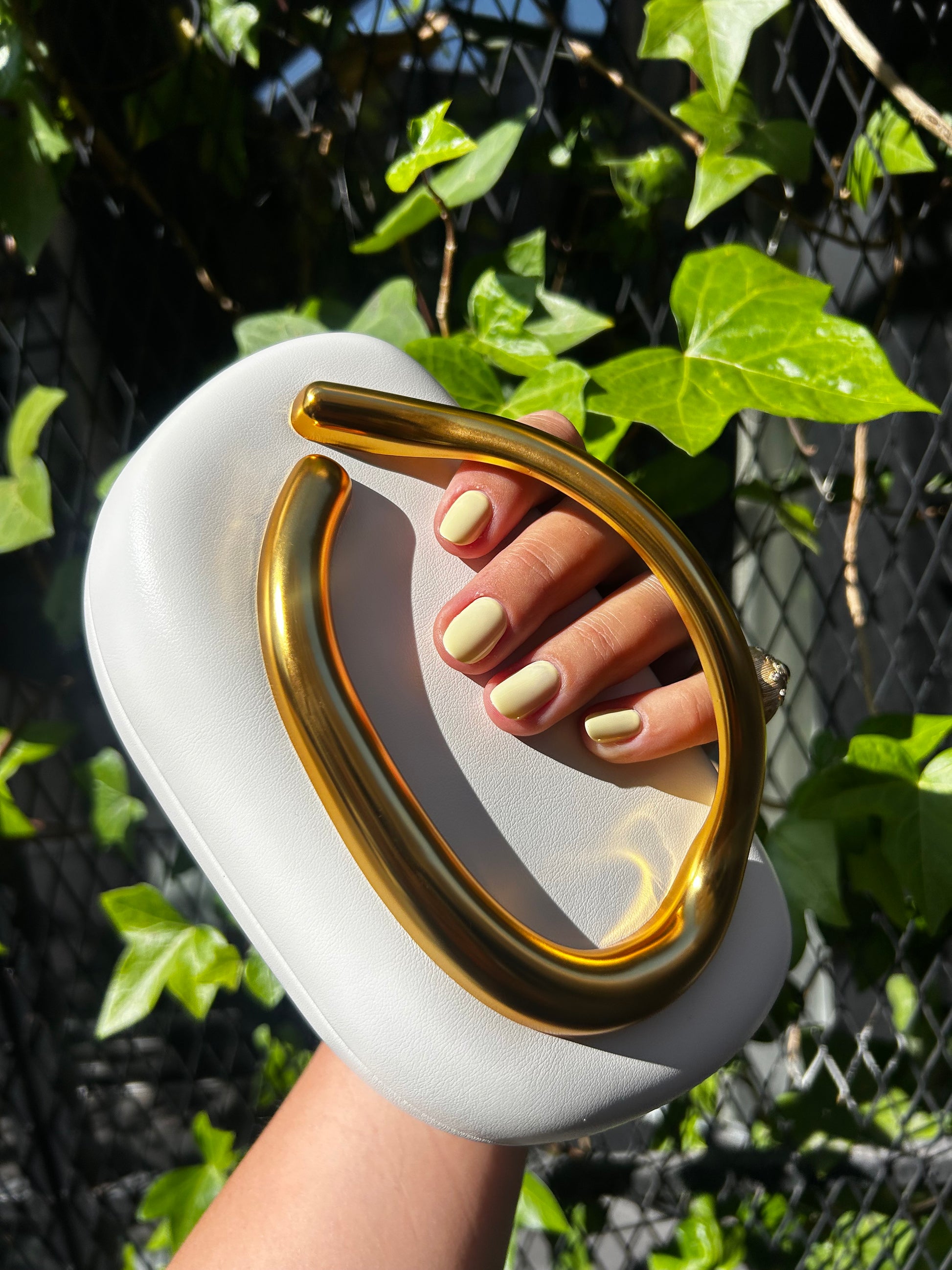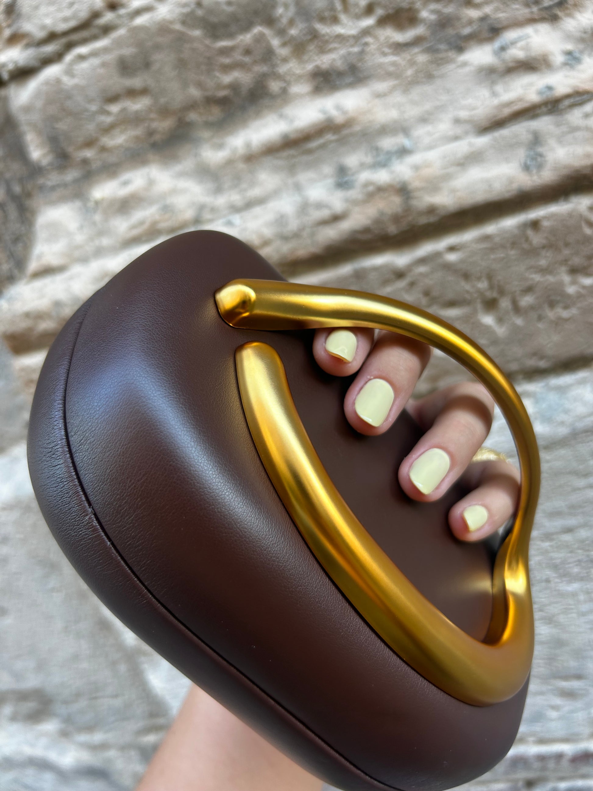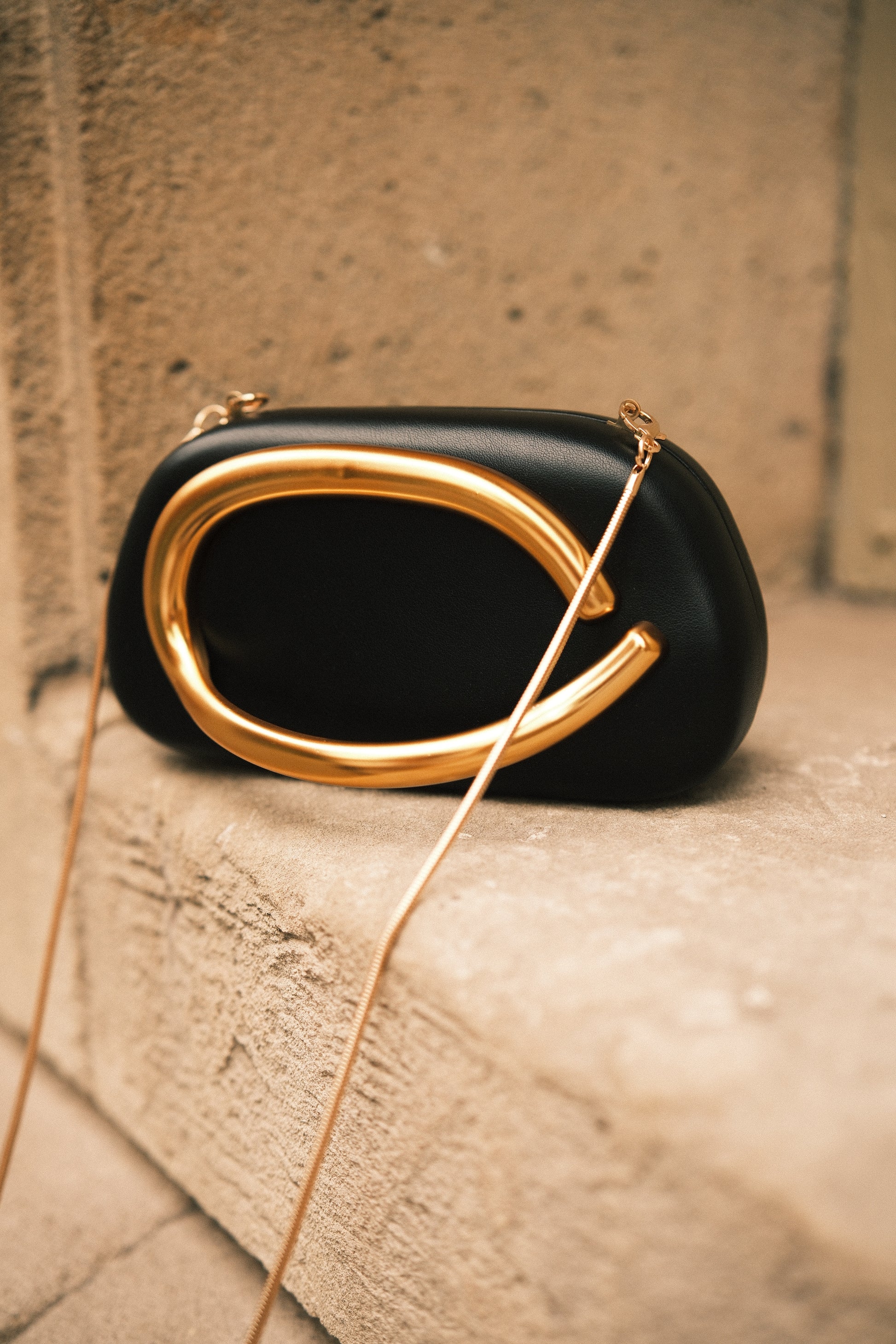 La pochette Divine incarne l’équilibre parfait entre modernité et intemporalité. Conçue en cuir rigide de haute qualité, elle se distingue par sa structure minimaliste et son bijou doré signature, à la fois audacieux et raffiné.