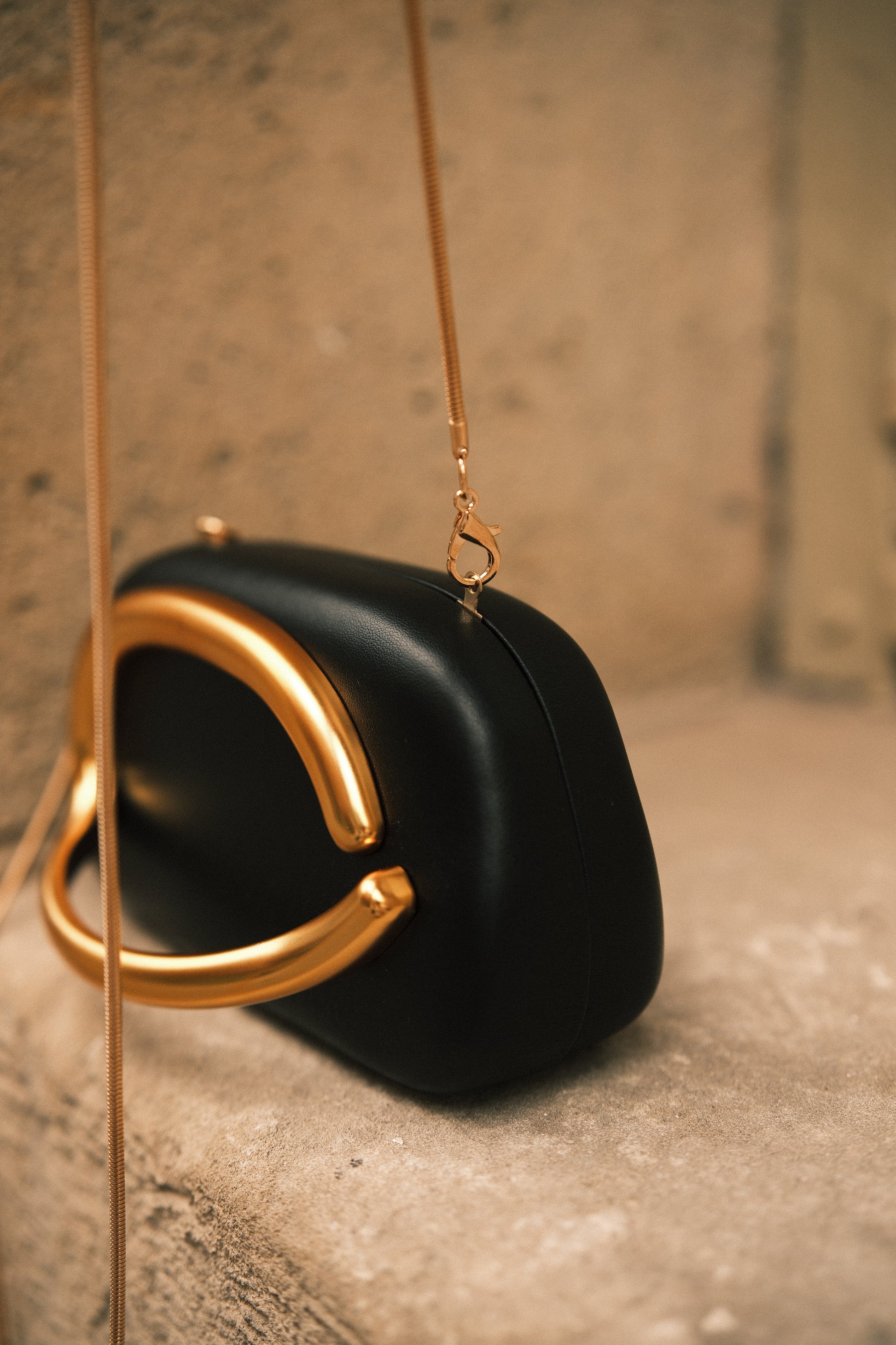 Pensée comme un objet d’art à porter, elle se glisse sous le bras, a la main ou se porte à l’épaule grâce à sa fine chaîne dorée.