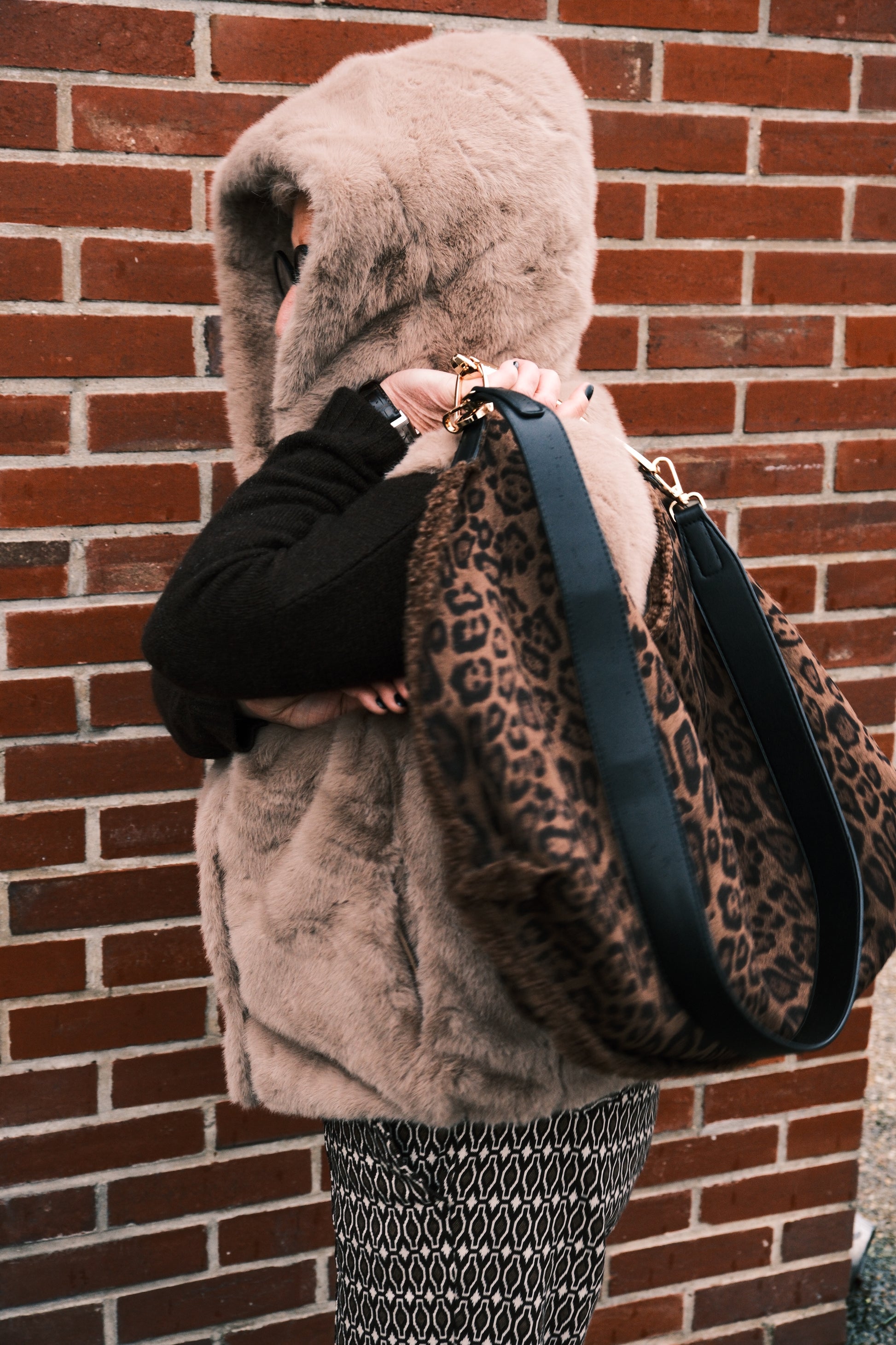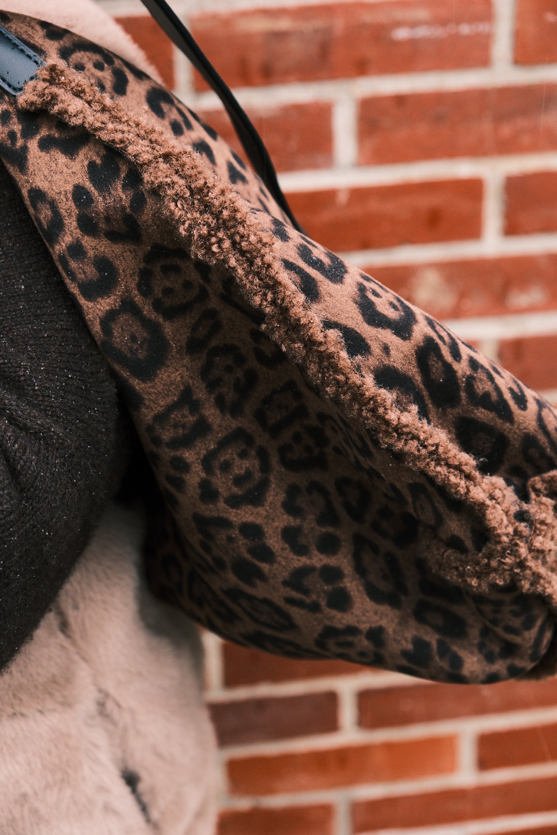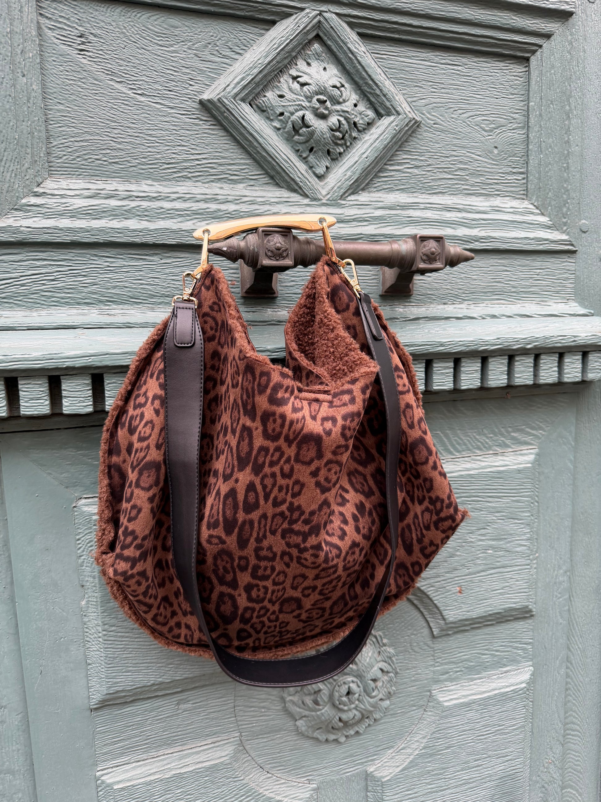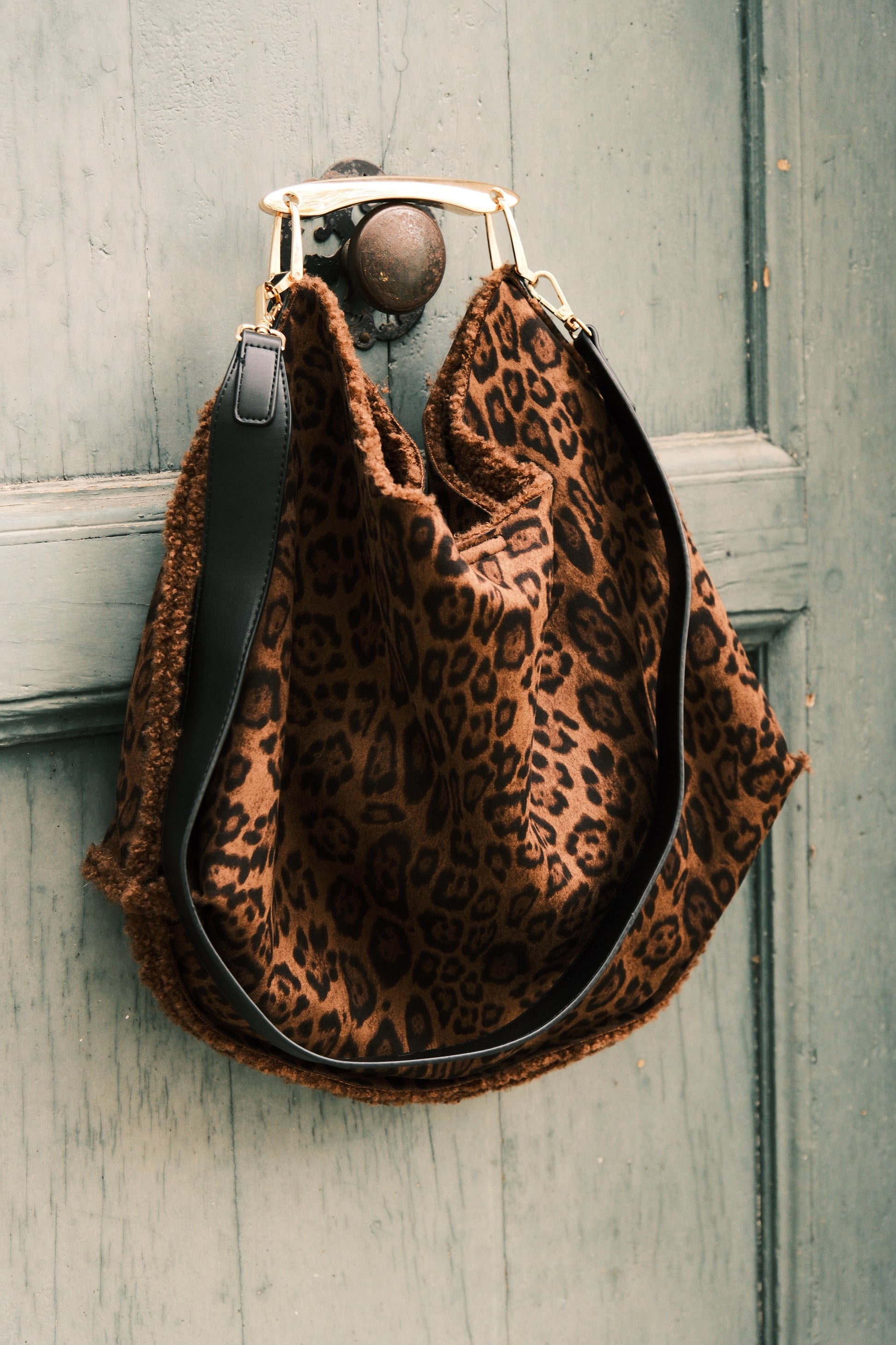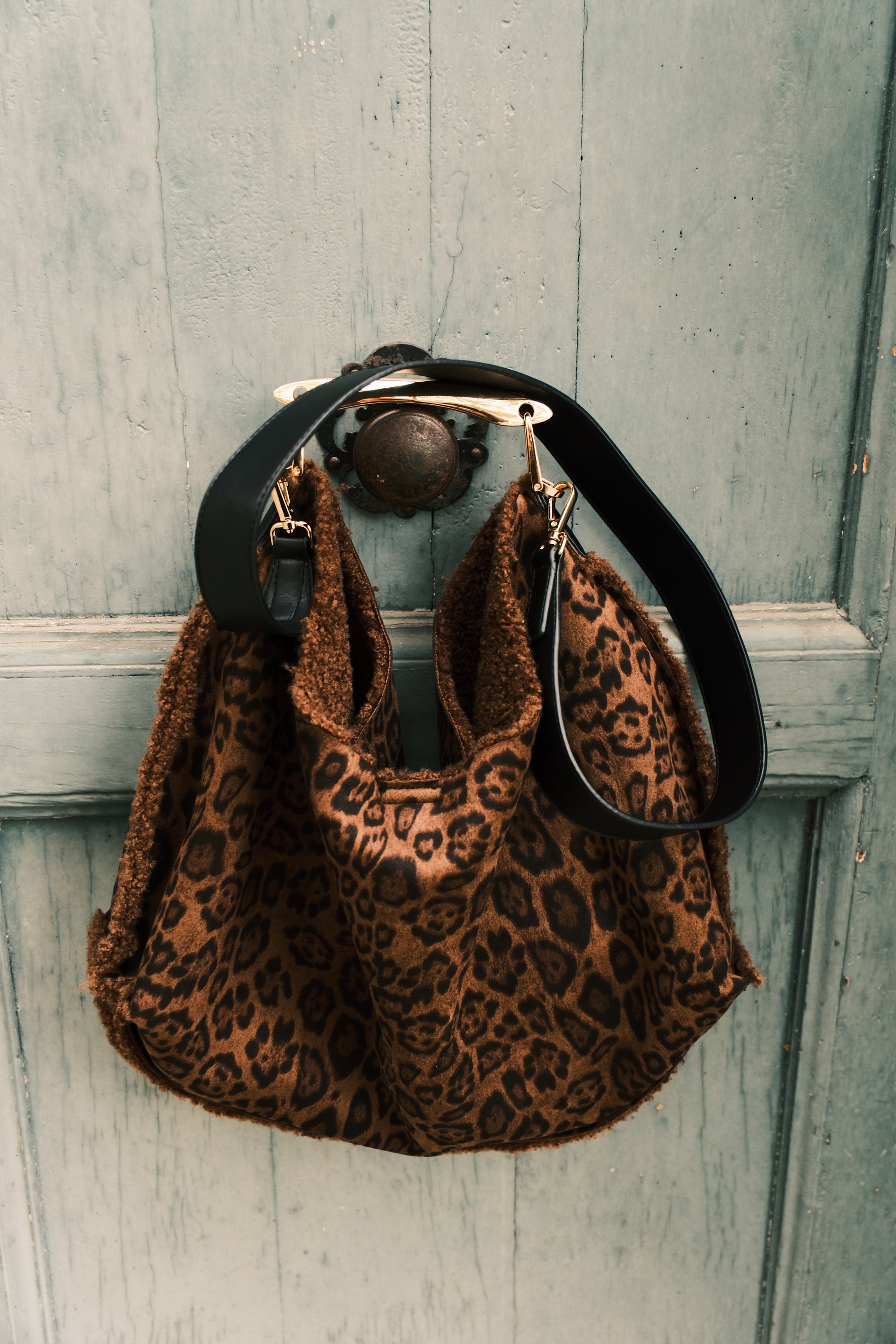 Succombez au charme du sac Léna, l’accessoire cocooning par excellence de cet hiver ! Confectionné en moumoute douce et imprimé léopard, il séduit par son allure à la fois sauvage et chaleureuse. Son bijou unique en or sur l’anse apporte une touche d’élégance précieuse, tandis que la bandoulière en cuir vous assure confort et style.