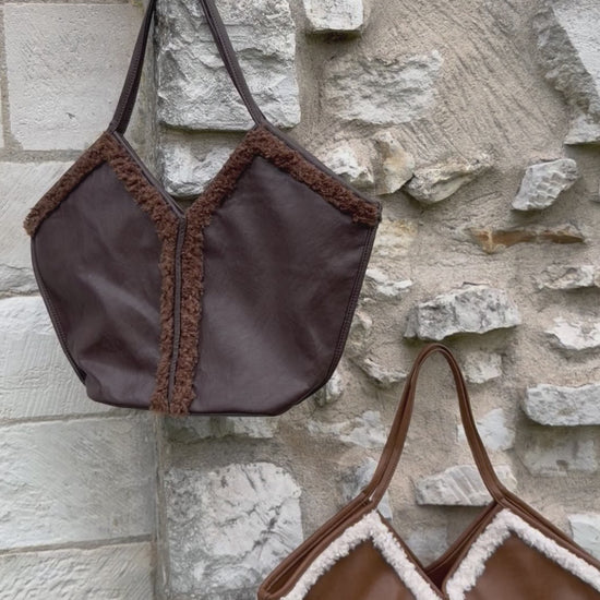 Le sac Megève est entièrement fait main en Italie, dans un pur cuir d’une qualité exceptionnelle. Son design doux et structuré est sublimé par des empiècements effet peau lainée qui lui donnent ce charme hivernal unique.