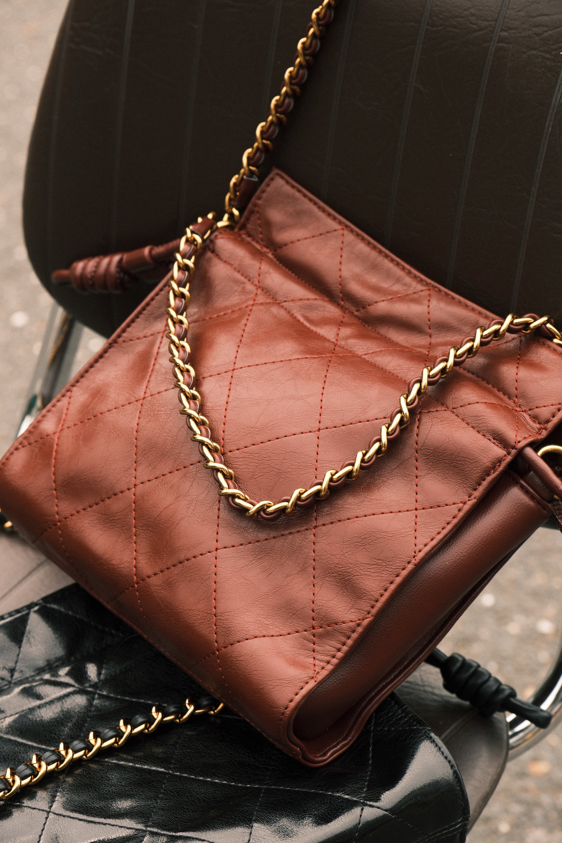 Doté d’une anse chaîne tressée de cuir, il se porte aussi bien à la main qu’à l’épaule, selon vos envies. Son format idéal accueille vos essentiels du quotidien tout en apportant une touche d’élégance naturelle à vos tenues.