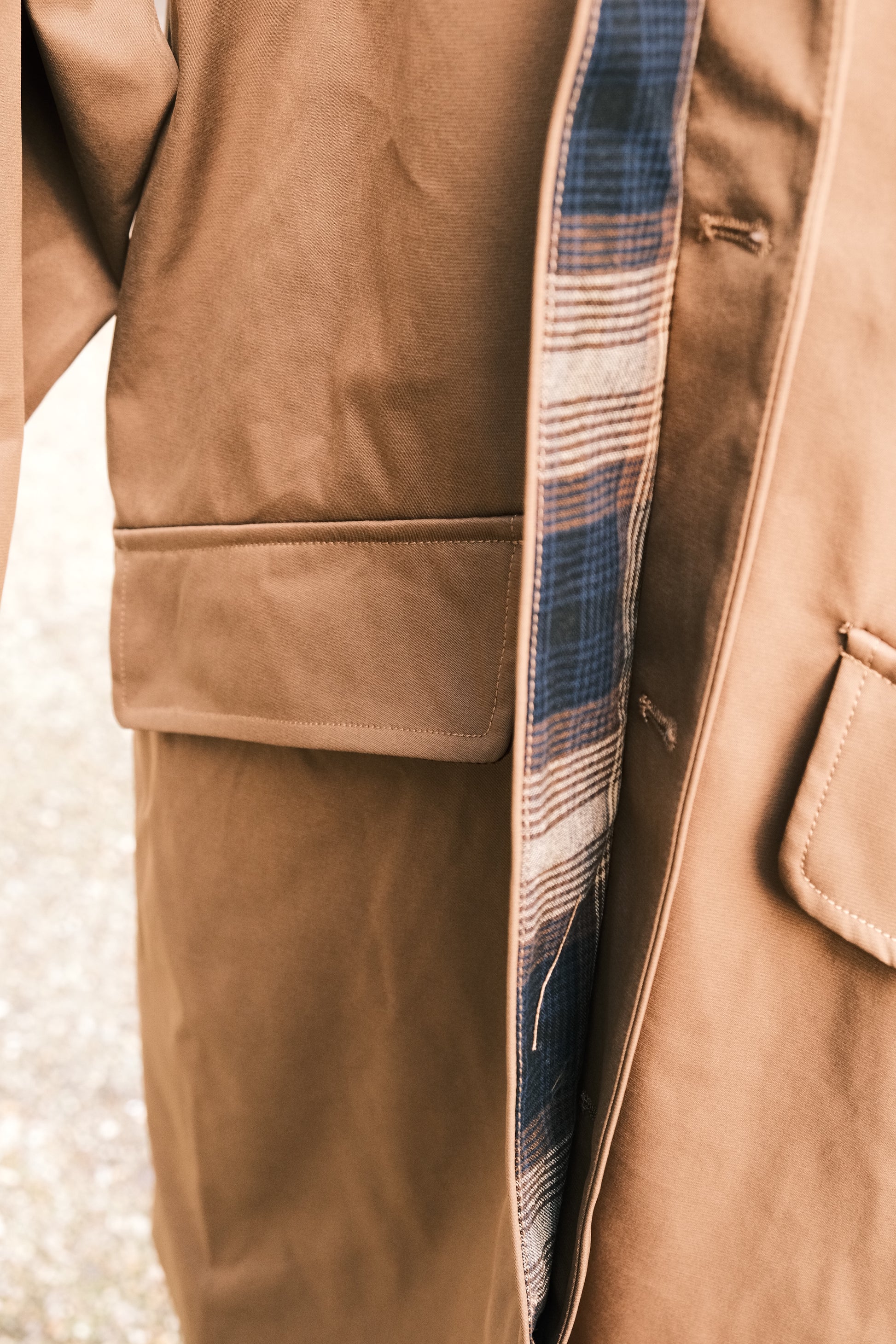 Son intérieur doublé en tartan apporte une touche élégante et authentique, tandis que sa capuche offre confort et protection au quotidien. Chaque détail a été travaillé avec précision pour garantir une coupe structurée, durable et agréable à porter.