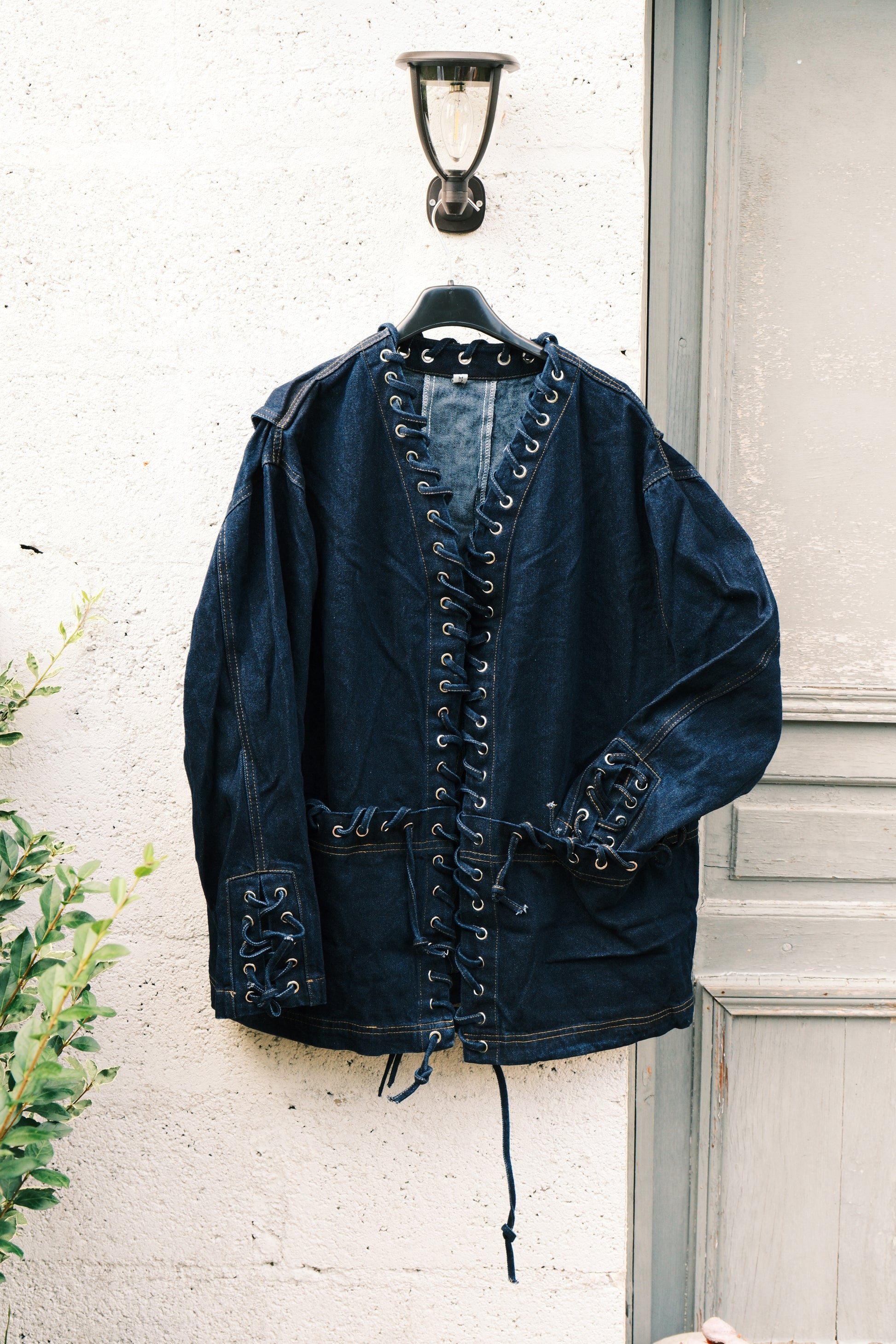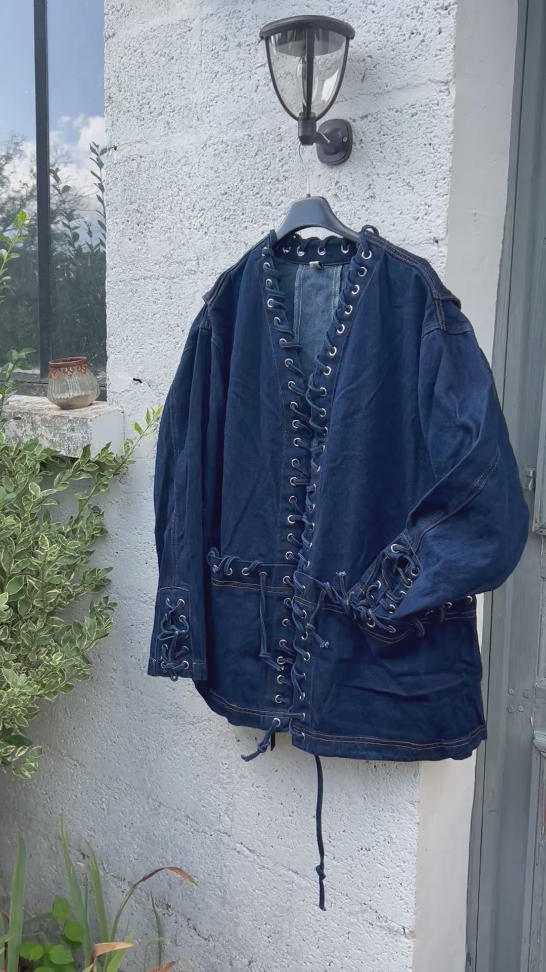 Sa coupe loose apporte confort et style, tandis que les détails lacets lui donnent une touche moderne et originale. Facile à porter, elle se glisse par-dessus une tenue pour un look branché ou se porte comme veste principale dans la journée. Taille unique