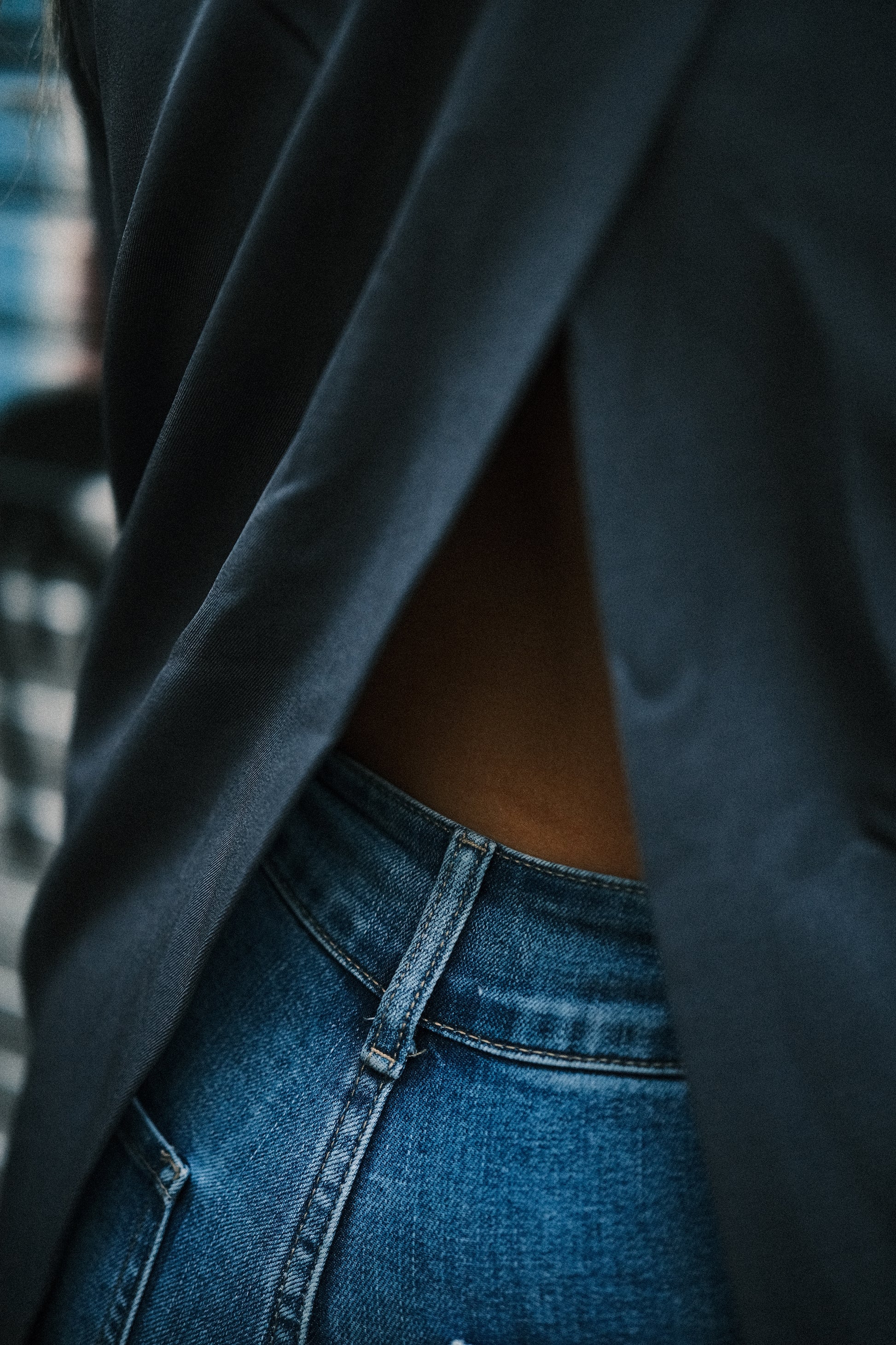 Parfaite pour la journée avec un chemisier ou un t-shirt en dessous, elle se transforme le soir en une veste audacieuse, portée à même la peau ou avec un simple bandeau. Un jeu de style entre mystère et assurance.