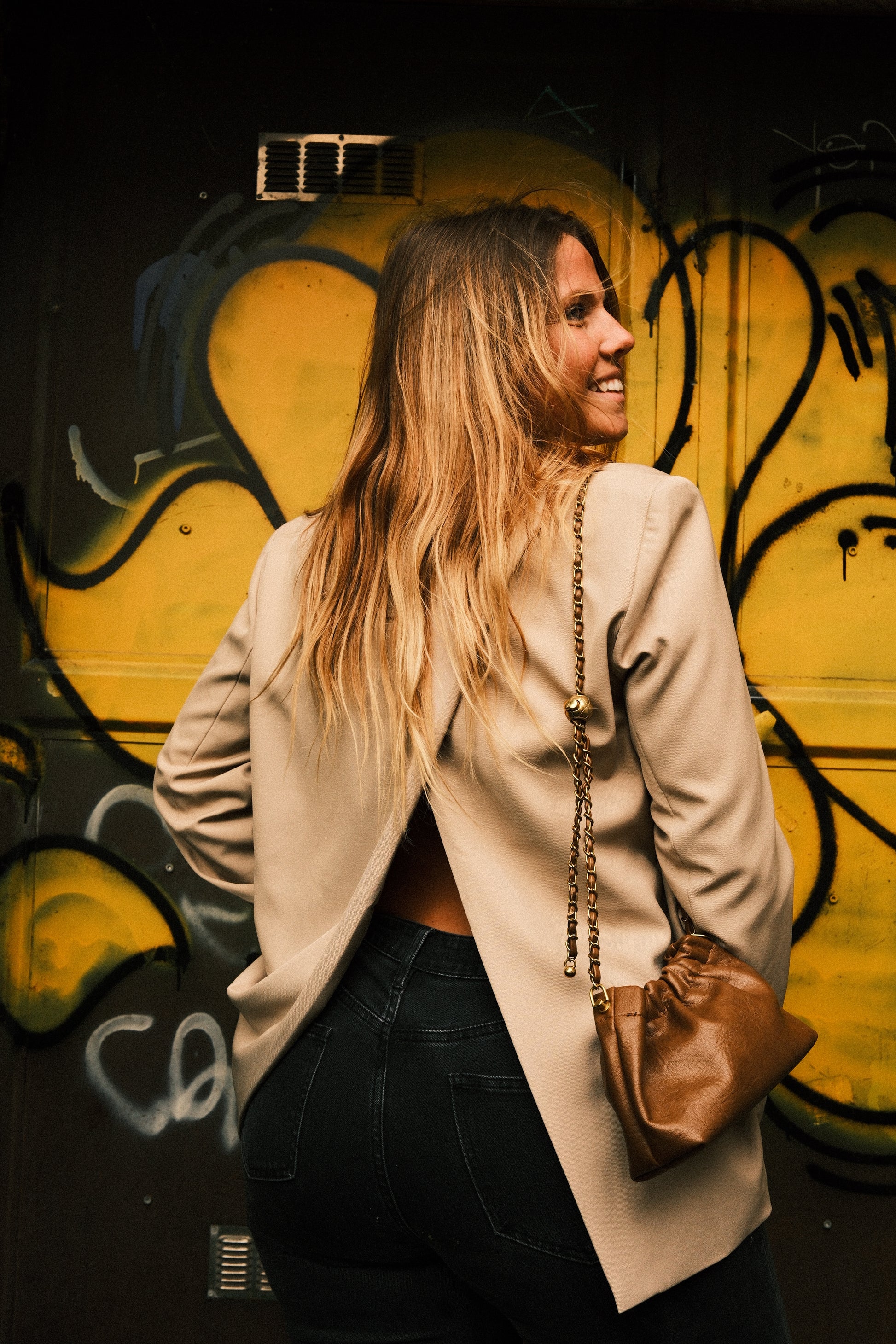 Une pièce forte qui ne laisse personne indifférent. Cette veste oversize cache un secret... une sublime ouverture au dos qui dévoile subtilement votre silhouette.